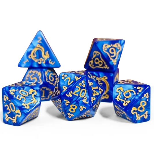 Blue Magic Stone Design Glitter Polyhedral Dice Set