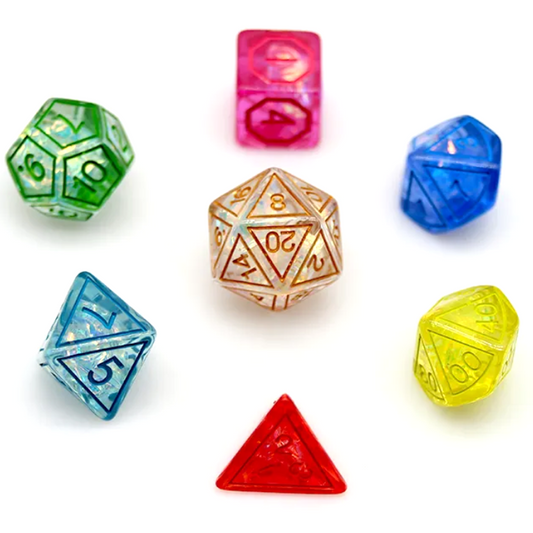 Rainbow Magic Stone Design Glitter Polyhedral Dice Set