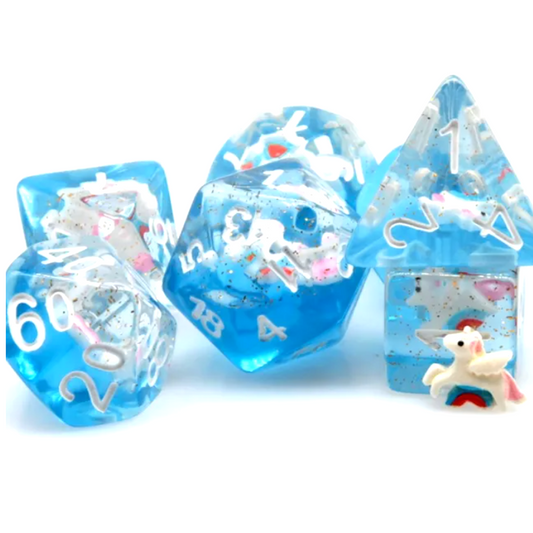 Blue Unicorn Dice - Mini 3D Unicorn Filled Polyhedral Dice Set