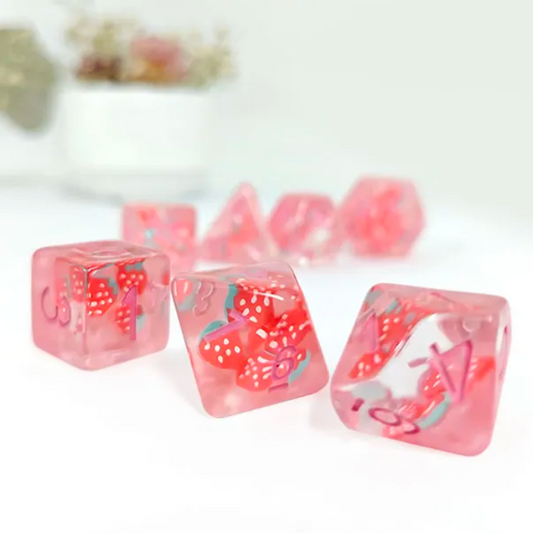 Strawberry Slice Dice - Mini 3D Fruit Filled Polyhedral Dice Set