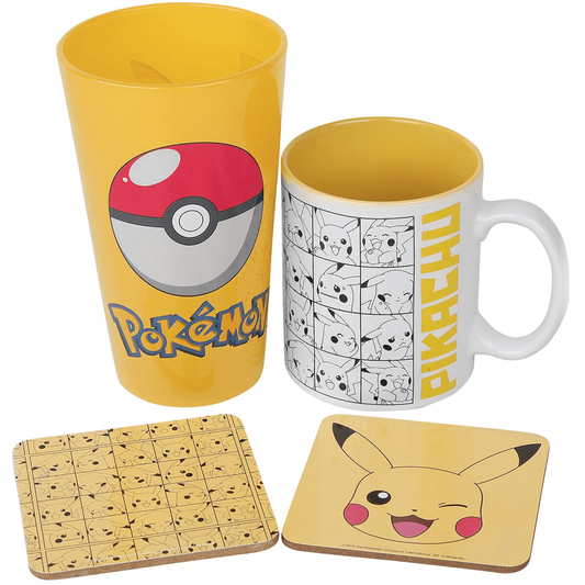 Pikachu Mug, Glass & Coasters Pokémon Drinkware Gift Set
