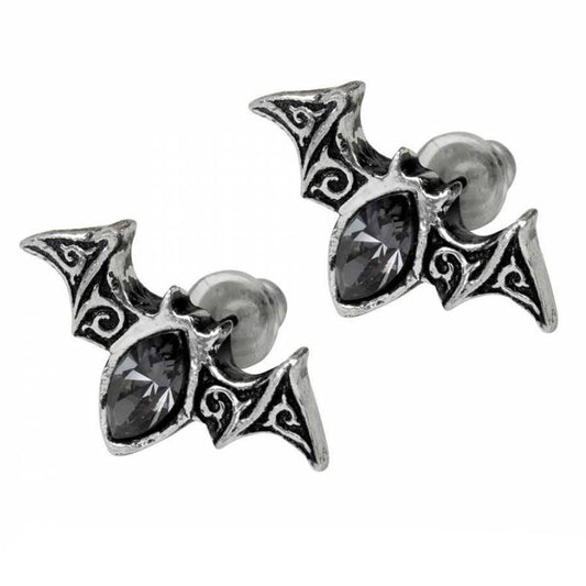 Viennese Nights: Pewter and Black Crystal Bat Stud Earrings