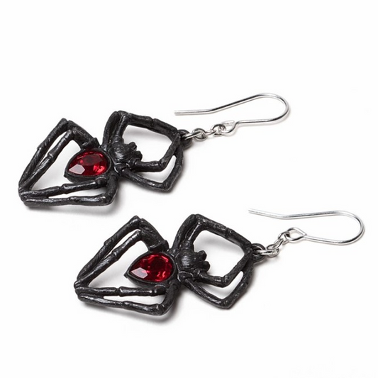 Black Widow - Pewter Spider & Red Crystal Earrings