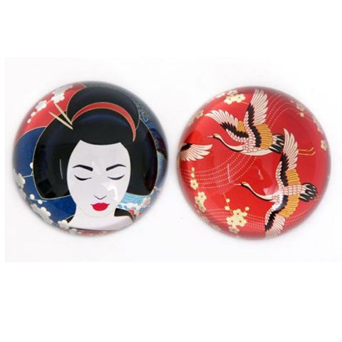 Geisha and Crane Glass Paperweights - Inspired by Japan