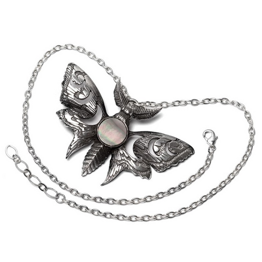 Lunar Moth - Pewter & Mother of Pearl Pendant Necklace