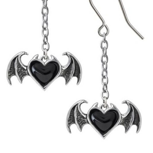 Blacksoul Droppers: Winged Heart Pewter Chain Earrings