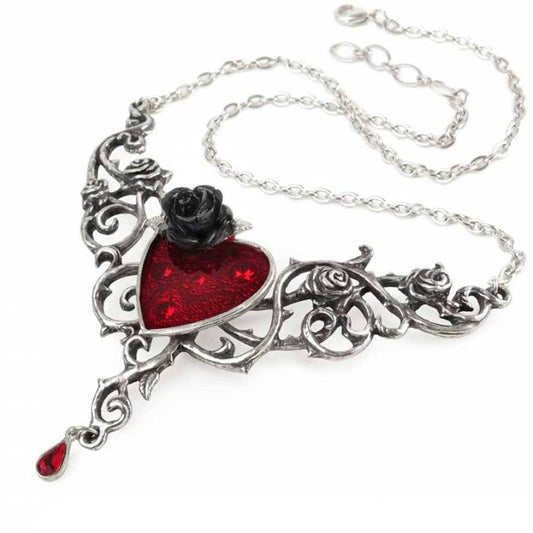 The Blood Rose Heart Pewter and Swarovski Crystal Necklace