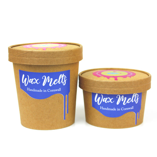 Scented wax melts forged by hand in the Happy Piranha wax works, Cornwall and wax warmers, oil burners and dishes to put them in.
