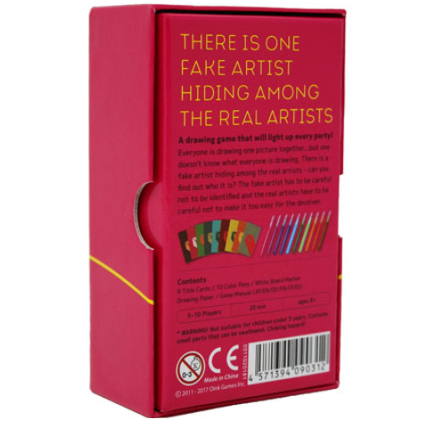 - Players will then go around the table twice, drawing one contiguous stroke each on a paper to draw the word established by the Question Master, then guess who the fake artist is.