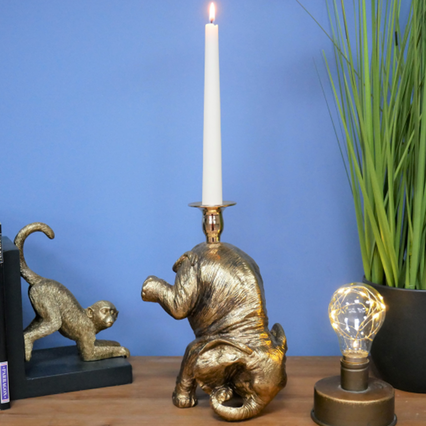 Add some playful, animalistic style to your house and home with this quirky candlestick holder shaped as a baby elephant doing a handstand.