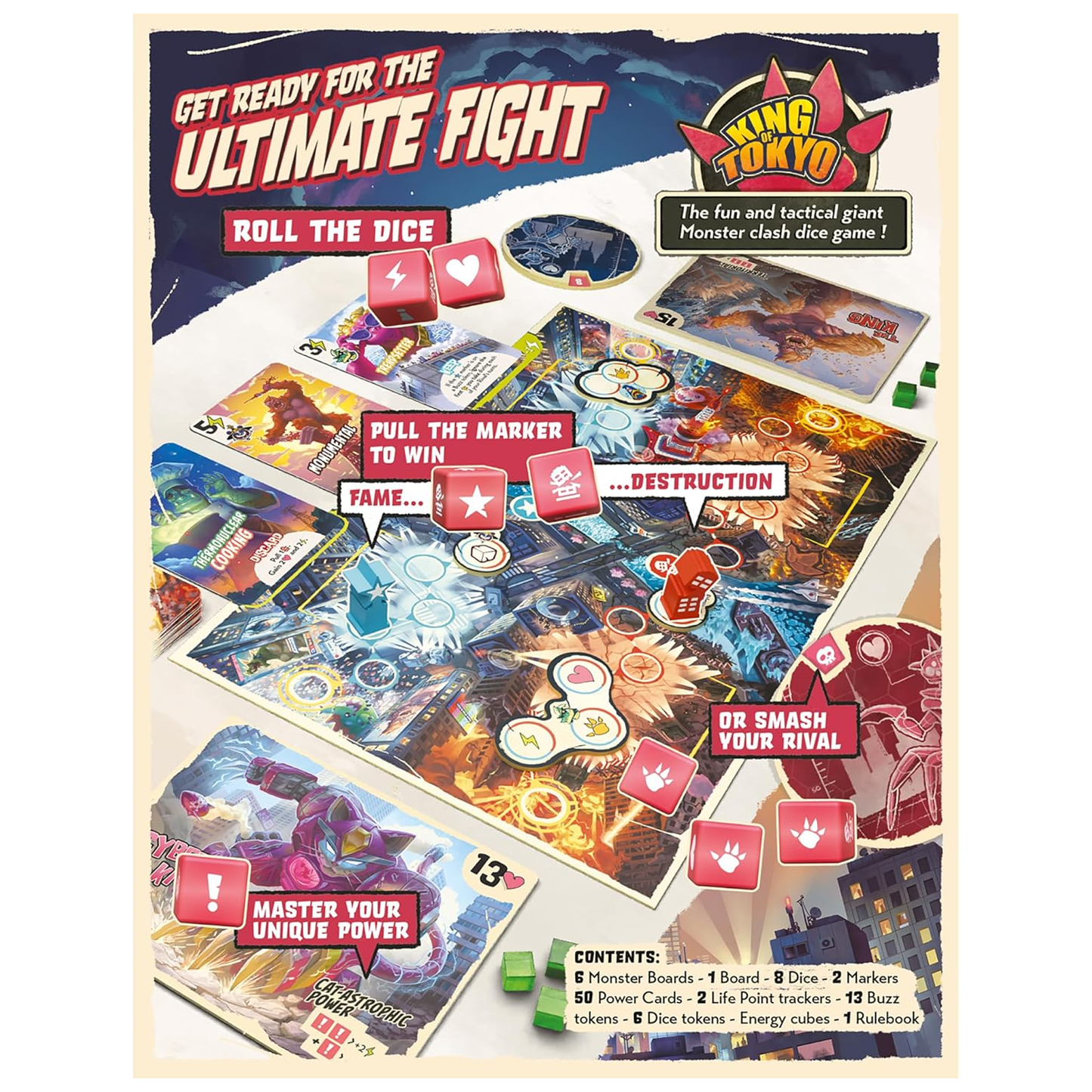 As night falls on Tokyo, two massive silhouettes rise from the smoke snaking up from destroyed skyscrapers. There can be only one who will be crowned King of Tokyo, either by annihilating their rival or by inspiring terror and awe from the crowds.