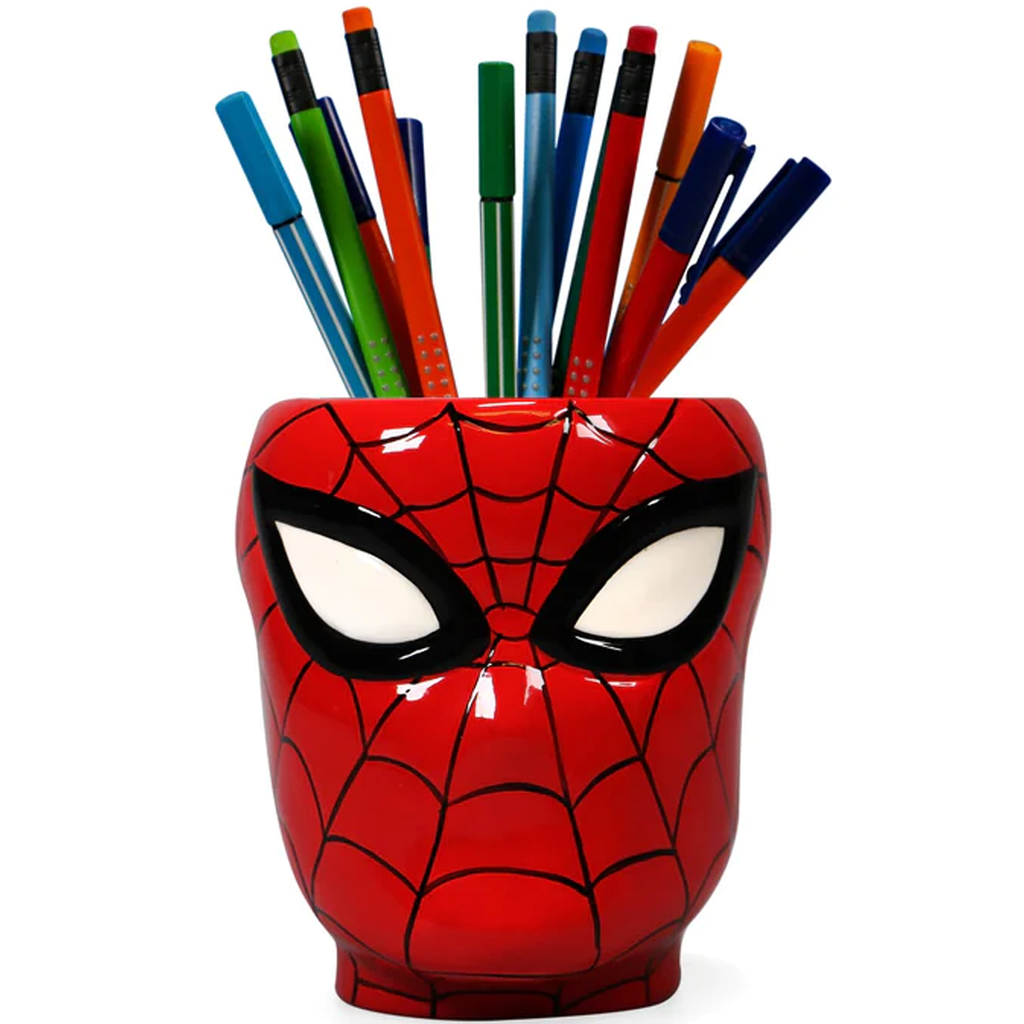 This ceramic storage jar is shaped as Spidey's iconic mask. It makes a great stationary, pen or toothbrush holding pot or vase and the hole in the back allows it to hang flat against a wall too.