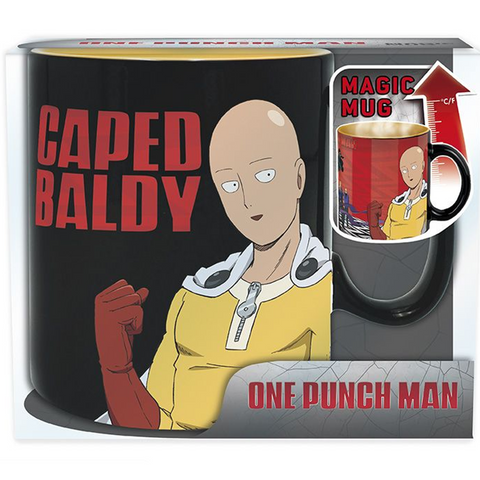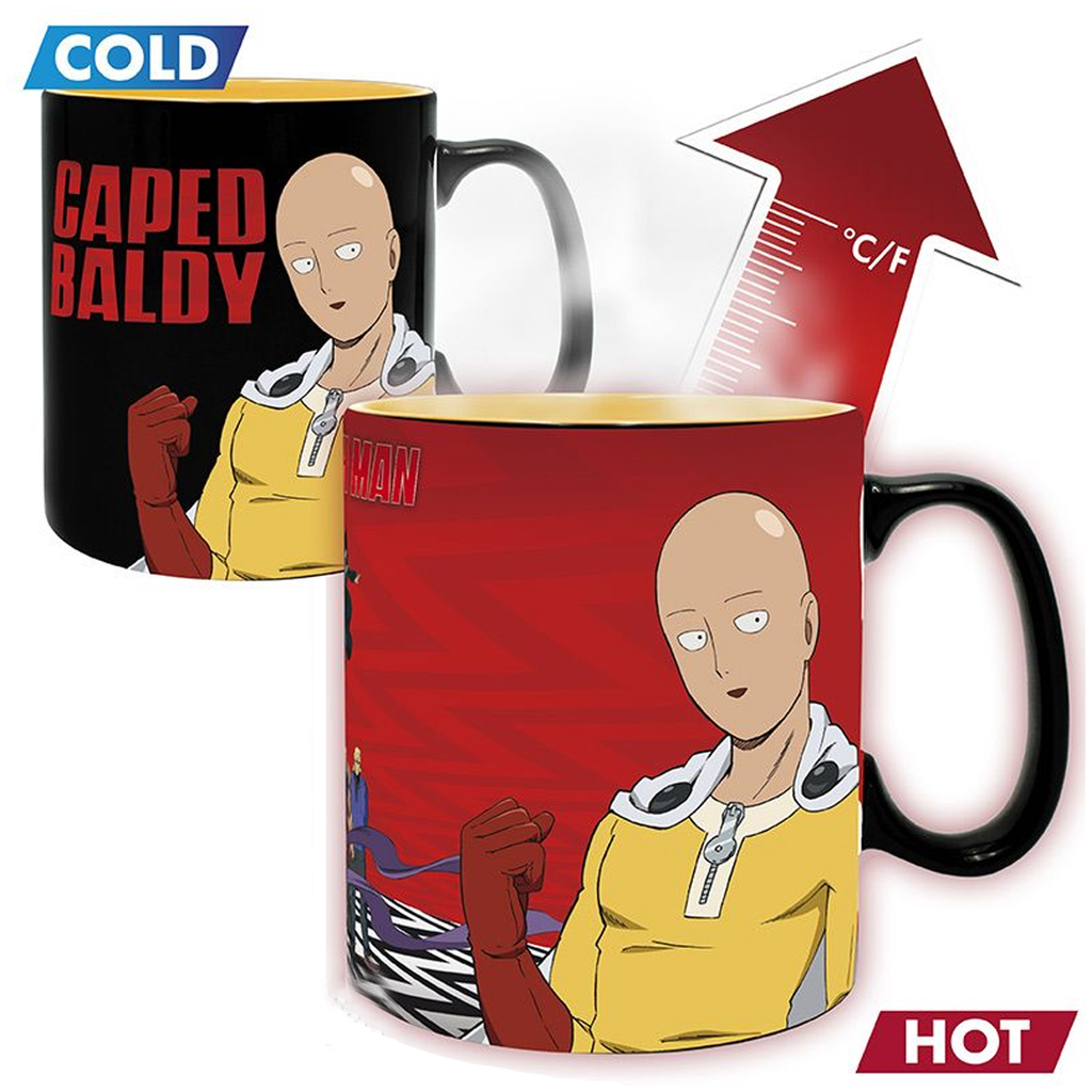 One Punch Man a.k.a caped baldy is here along with an infamous hero hunter on this colourful heat change mug.
