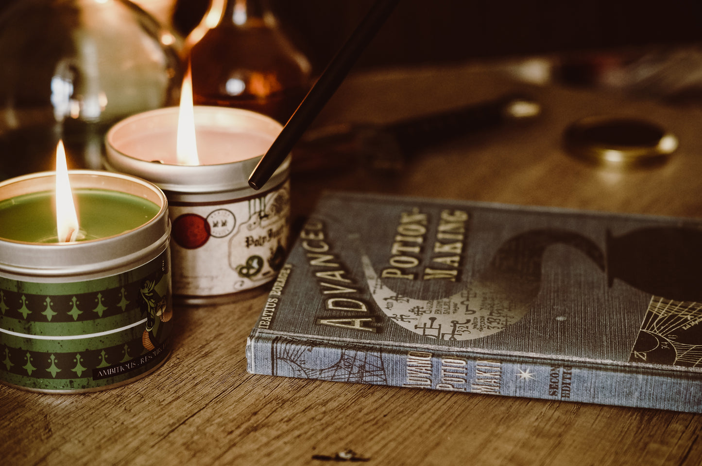 Try our Amortentia, Chocolate Frog, Potions Class & Ogden's Fire Whiskey wizarding scented candles, and the 3 set!