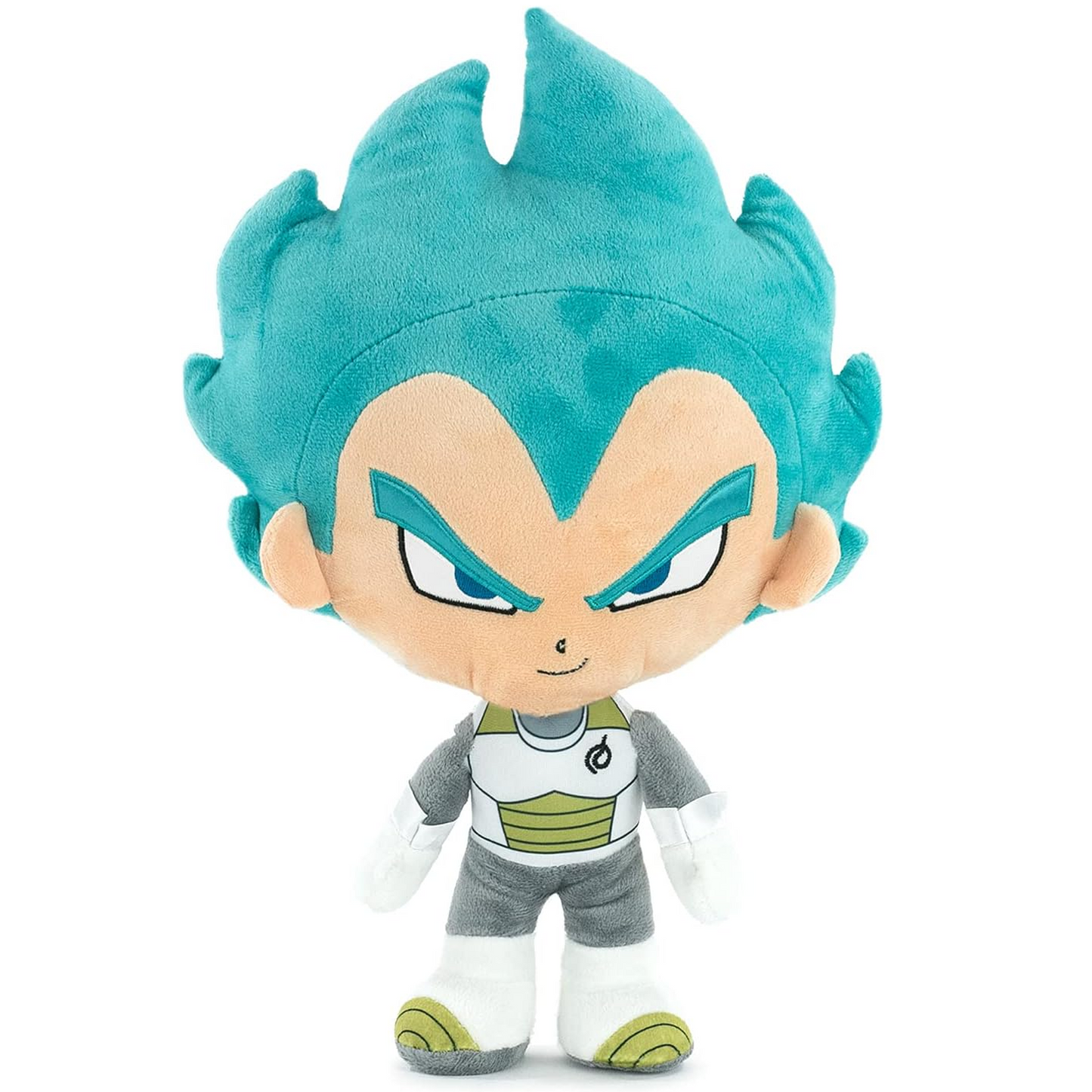 This kawaii, officially licenced 11 inch Dragonball Z plushie features the iconic Vegeta in his Super Saiyan form with electric blue hair.