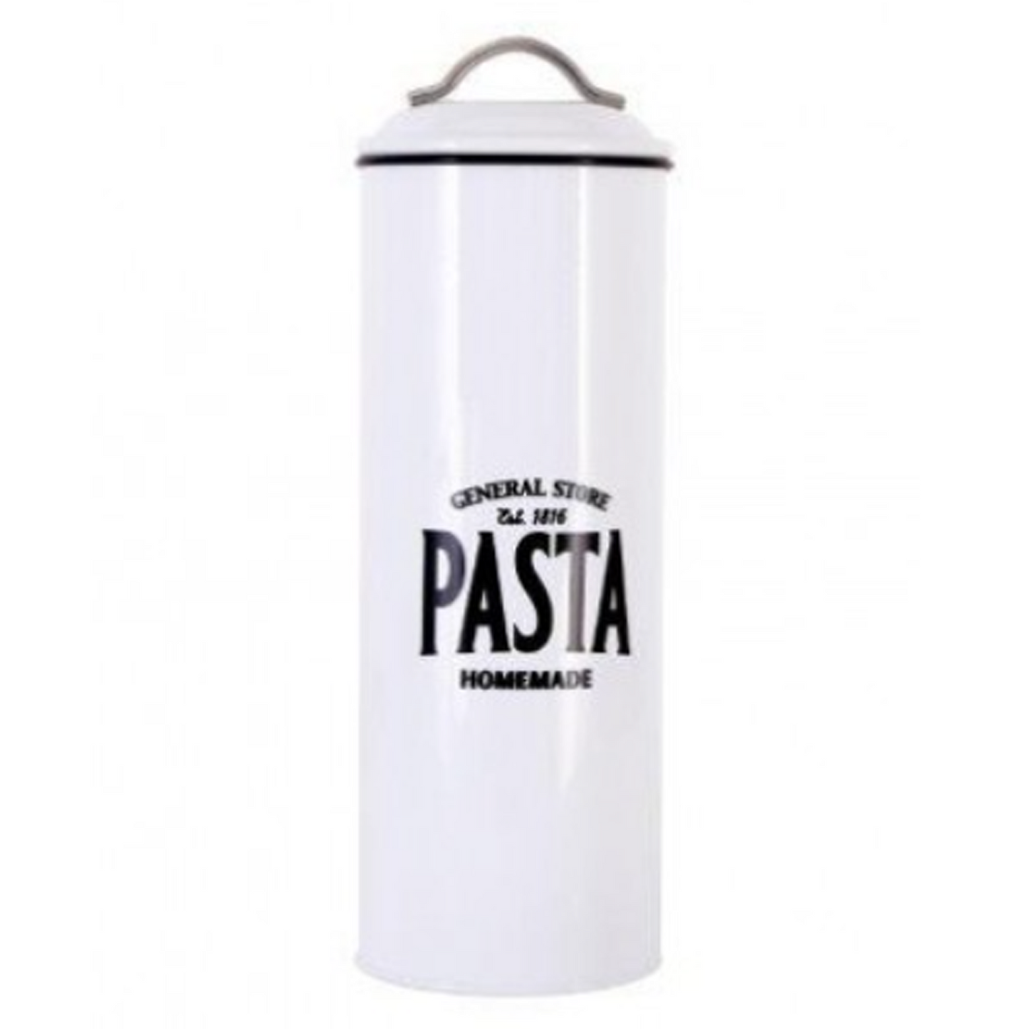 This metal past jar comes with a handy handled lid and is tall enough to fit your sketti in.