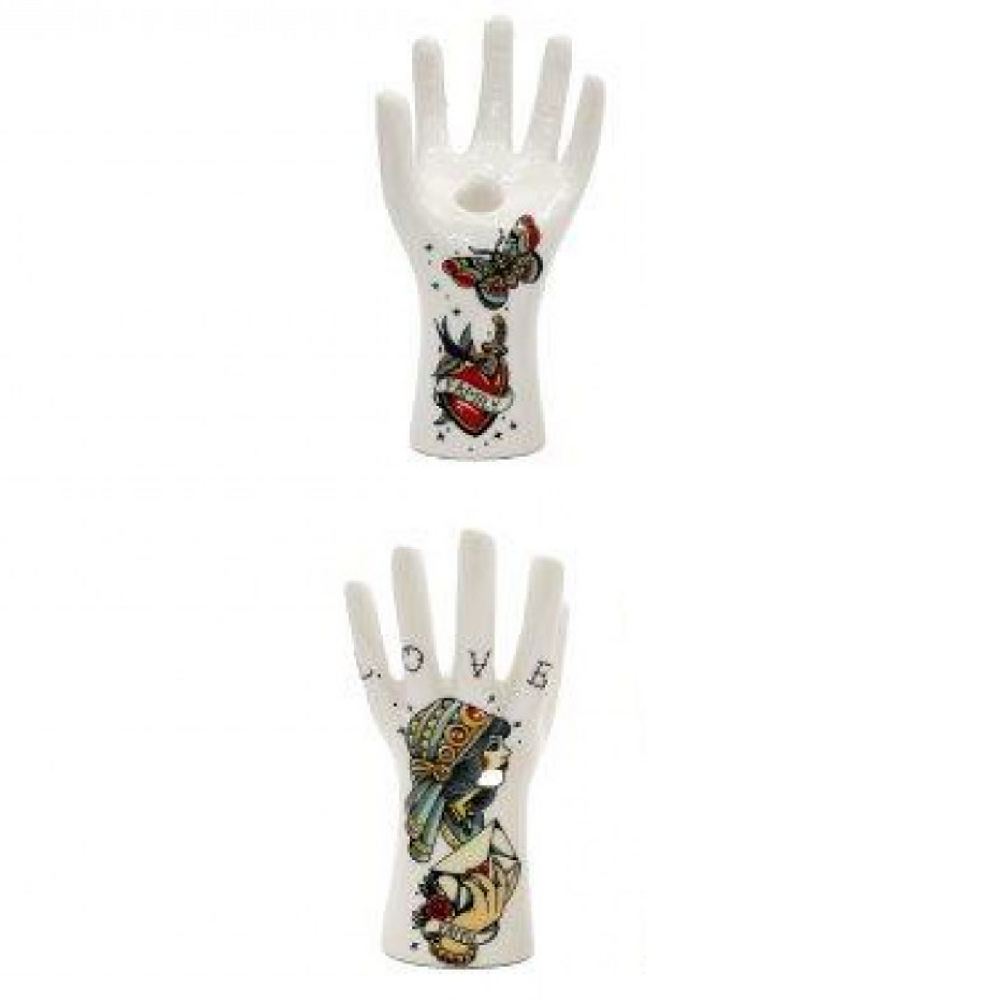 This handy ornament will hold a pillar candle for you, while adding some alternative tattooed style to your house and home.